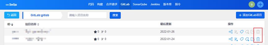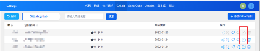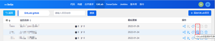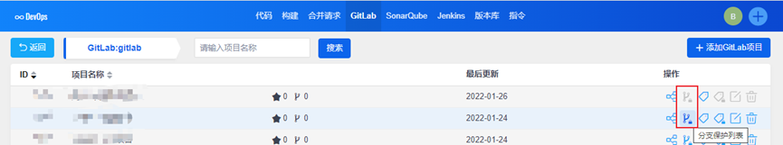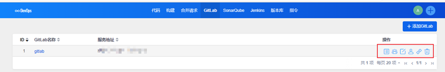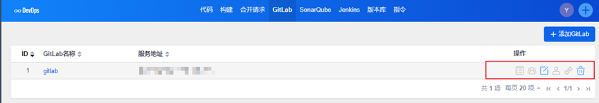 - 假设禅道用户已与该GitLab服务器用户绑定,那么该GitLab服务器操作列按钮均可点击;