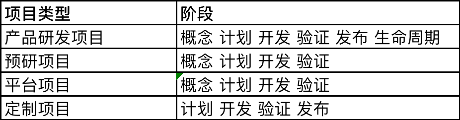 1、IPD管理模型具备4种项目类型,不同项目类型具备不同的阶段: