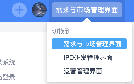 基于流程和业务范围的不同,禅道IPD版区分了三种界面类型: 需求与市场管理界面、IPD研发管理界面、运营管理界面,不同的团队可以在不同的界面类型下进行团队协作。
