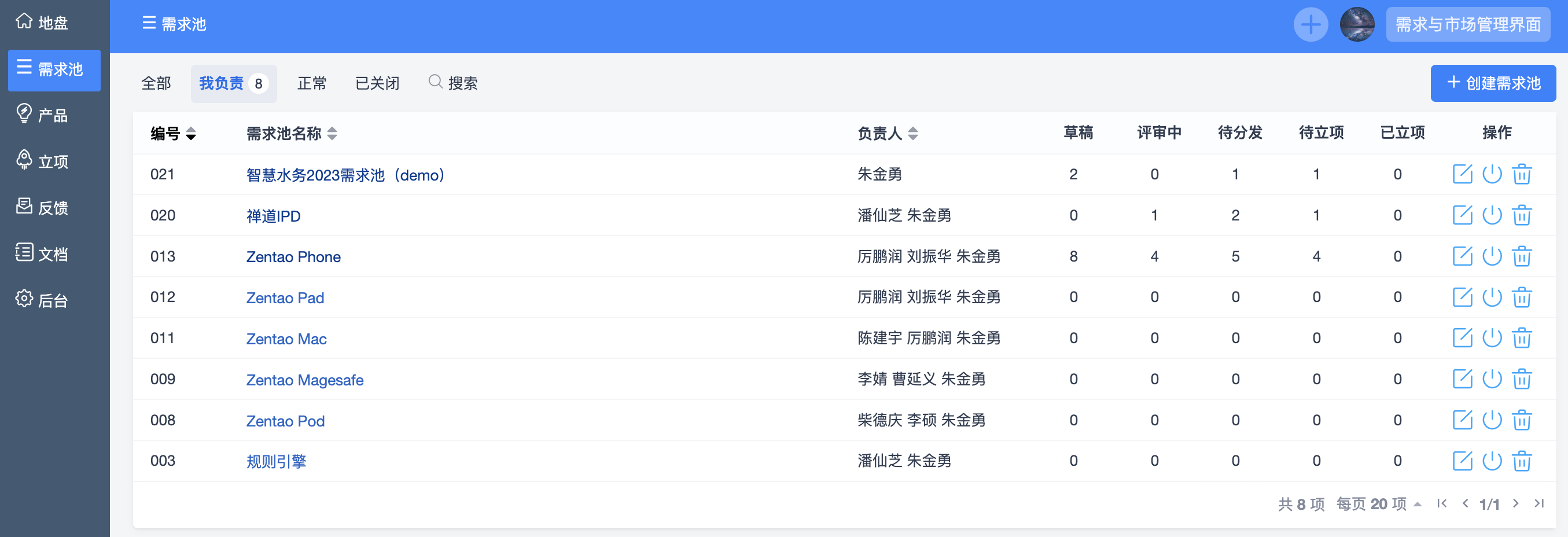 1、需求与市场管理界面