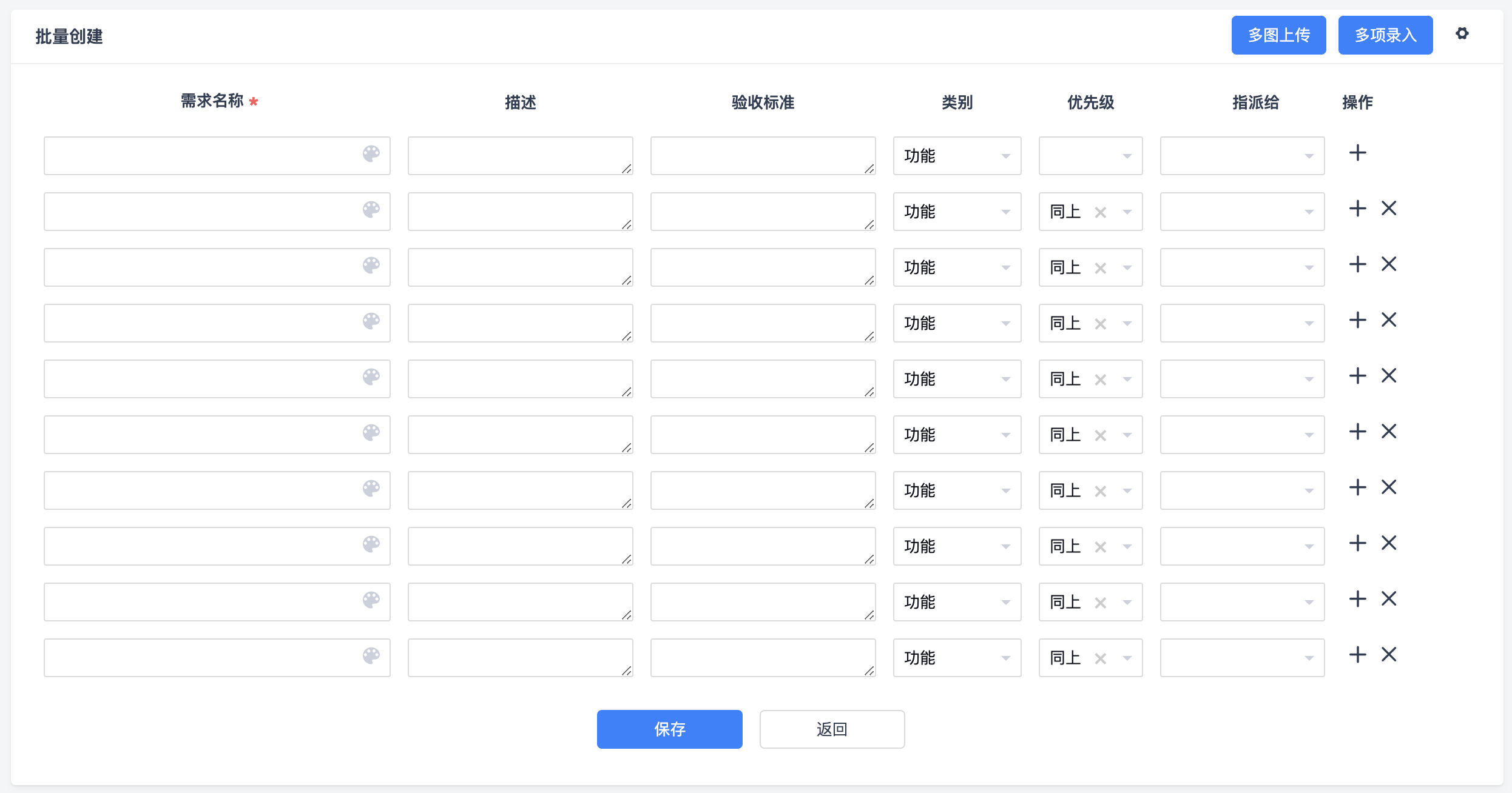 点击右上角的多项录入,可以以文本方式批量录入多条需求进行创建。