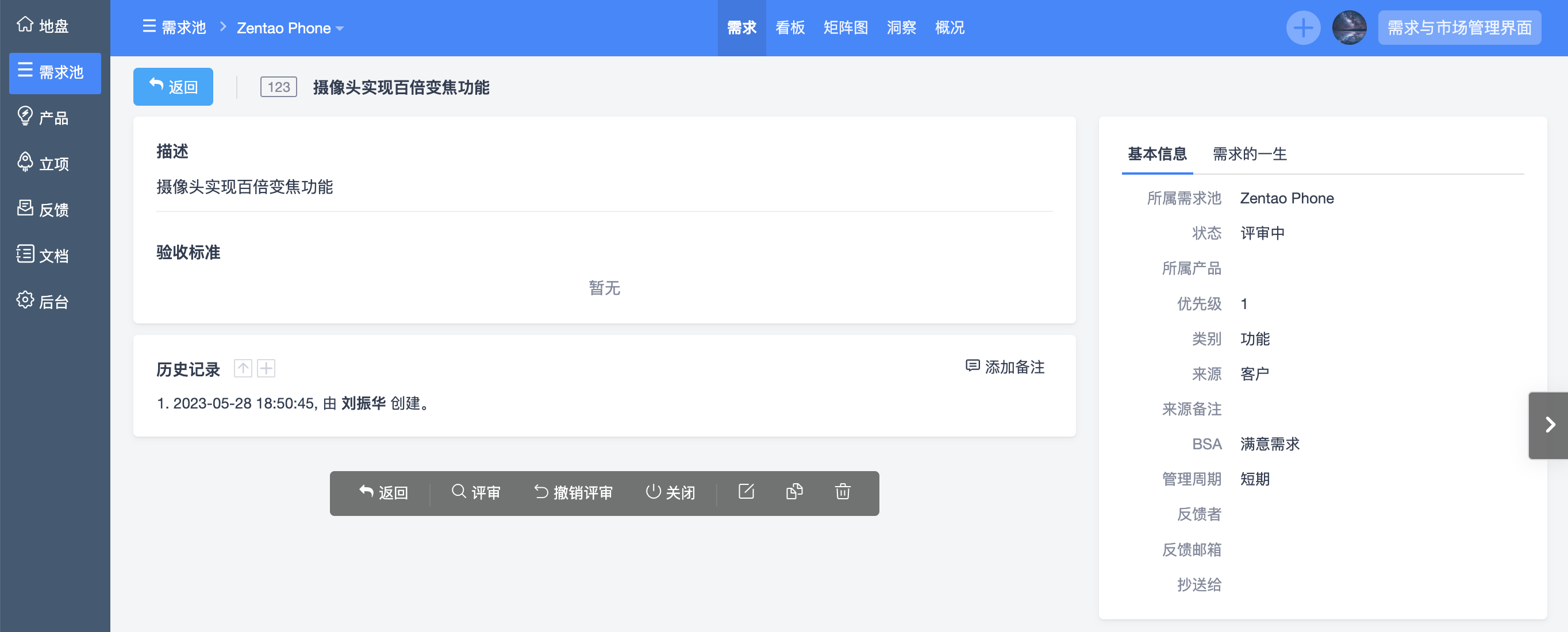 需求池可以清晰的记录需求并留痕,有助于对产品需求进行清晰的战略规划,同时便于对需求进行全生命周期管理。