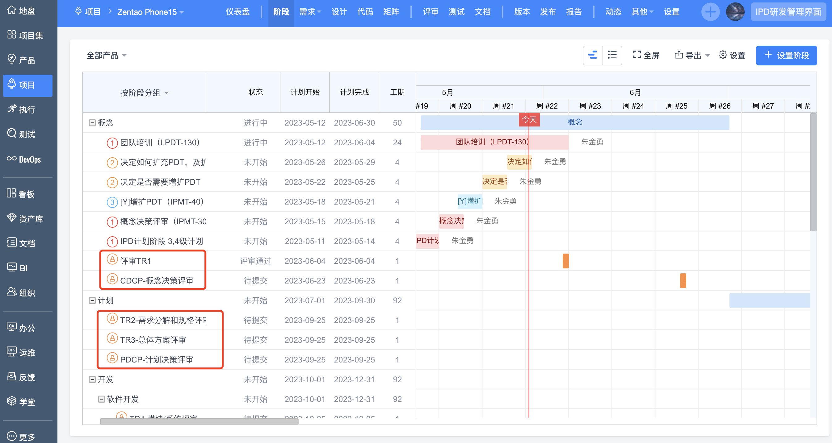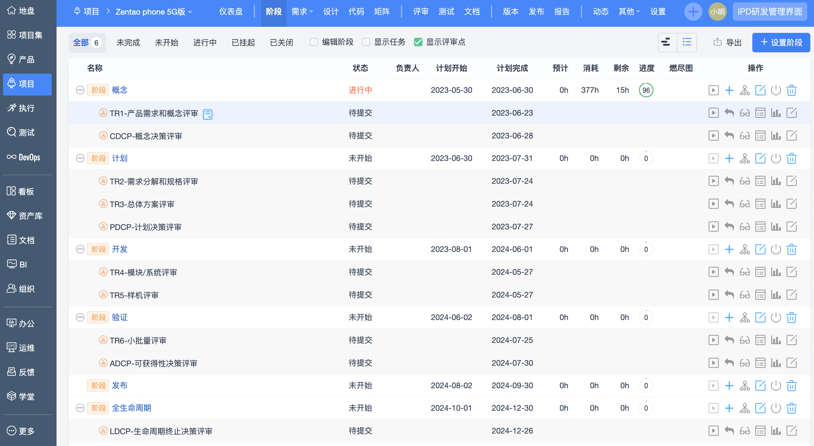 产品研发流程主要管理整体的研发流程,位于IPD研发管理界面,帮助产品研发团队(PDT)更加专注于研发管理。