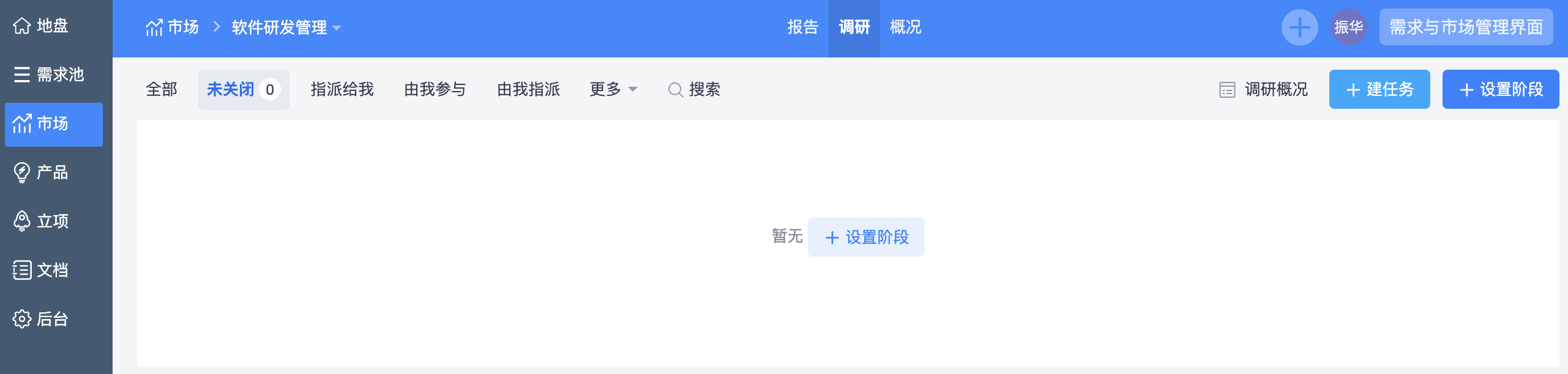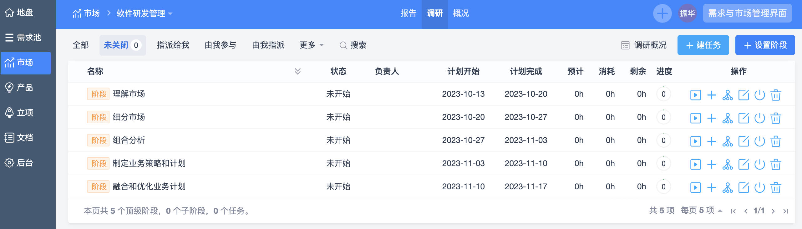 在调研列表中点击调研名称,可以进入调研阶段和任务列表。