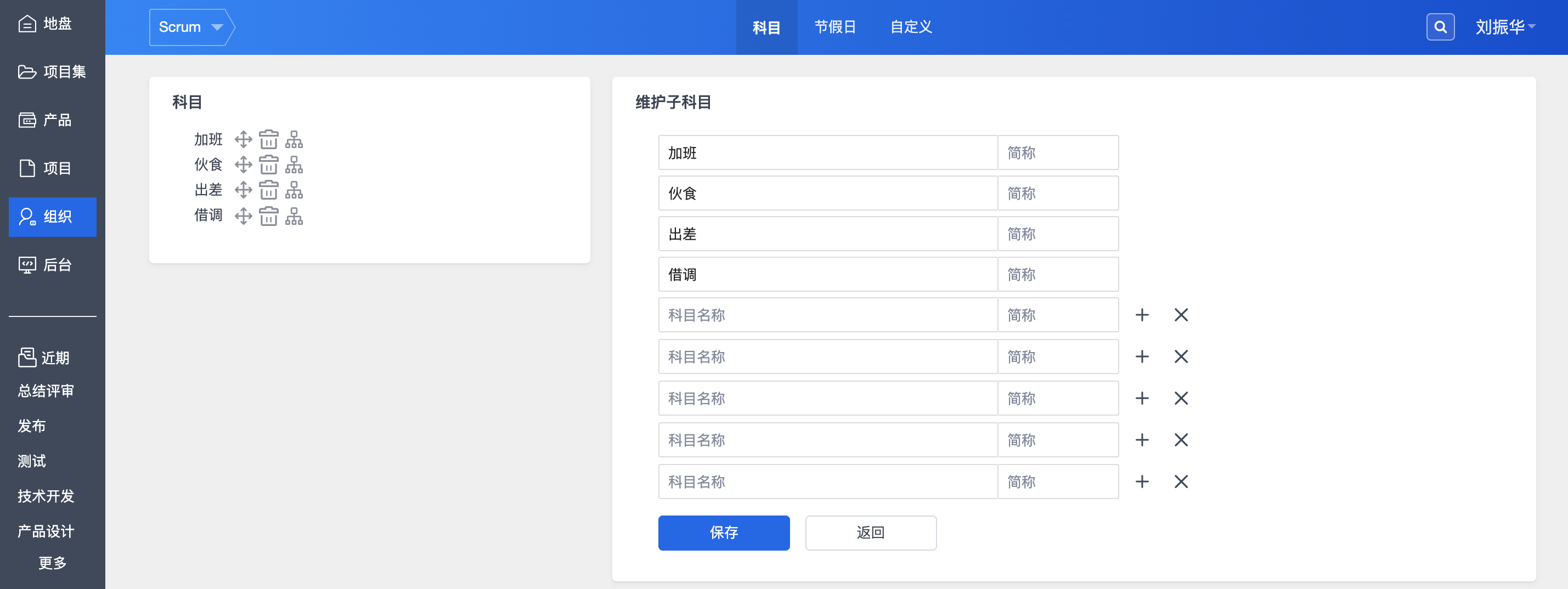 1. 进入组织--科目视图,可直接维护项目中需要支出的科目。