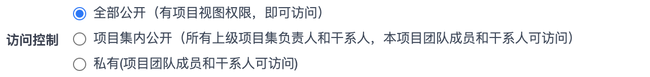 项目集内公开 (所有上级项目集负责人和干系人、本项目集负责人和干系人可访问)