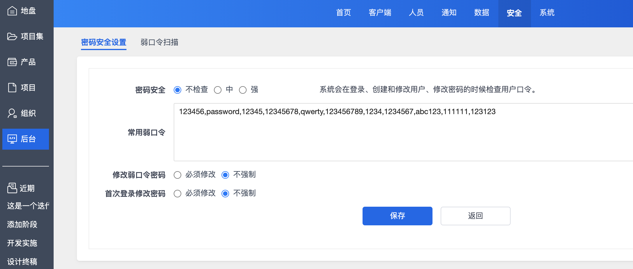 如果需要维护密码安全设置可以到 后台--安全 页面进行修改。