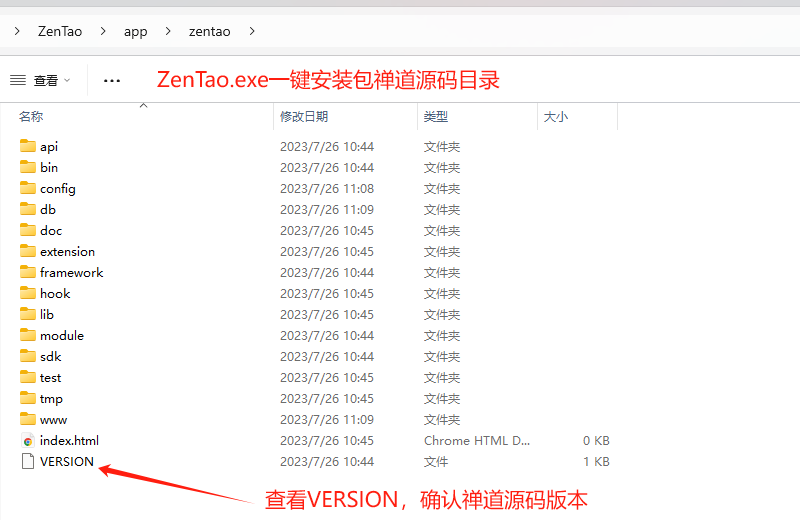 - 新版本一键安装包(启动文件ZenTao.exe):将源代码包解压缩后的zentaopms下复制到zentao安装目录下面。比如你原来的安装目录是C:/ZenTao (启动文件C:/ZenTao /ZenTao.exe),把zentaopms/下面的所有文件覆盖到C:/ZenTao/app/zentao 下面。