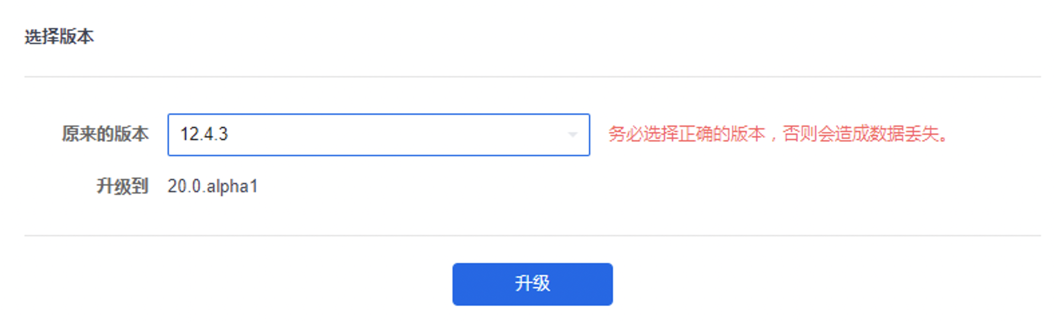 2. 选择版本,请选择原来的版本,否则会造成数据丢失。