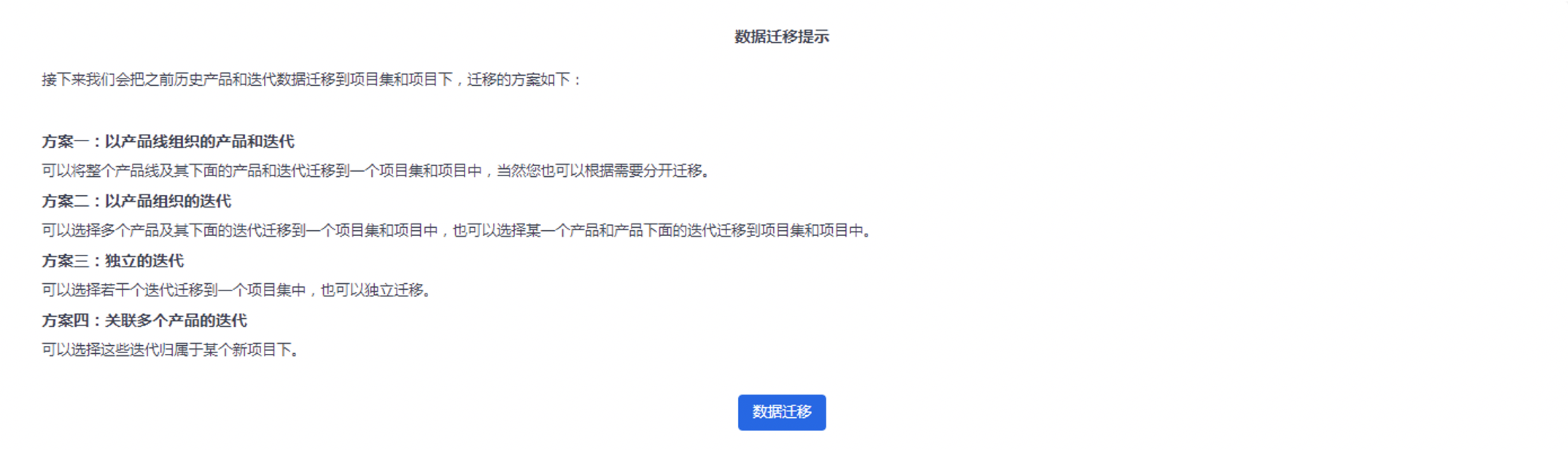4.数据迁移提示,让用户清晰的知道老版本的历史数据迁移到新版本中的四种方案。
