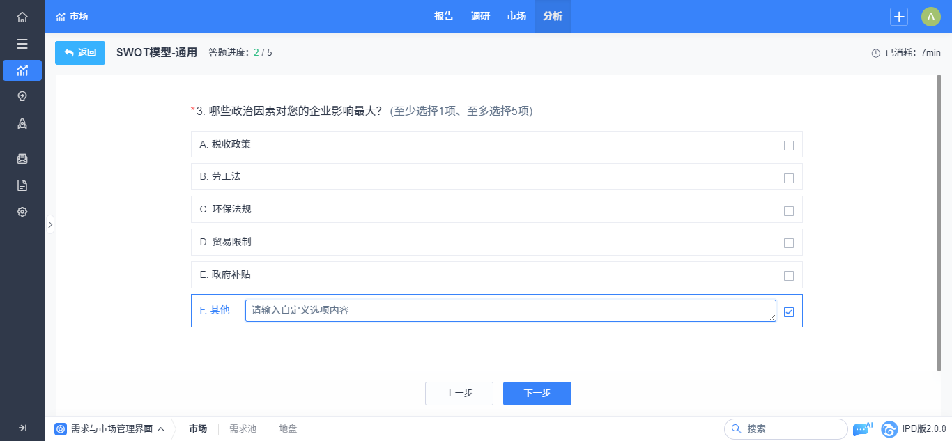除内置问题内容,我们还支持分析者根据实际场景补充更多内容。根据具体情况,例如选择题的"其他"选项、表格填空添加更多行等,以提供更好的功能和体验。