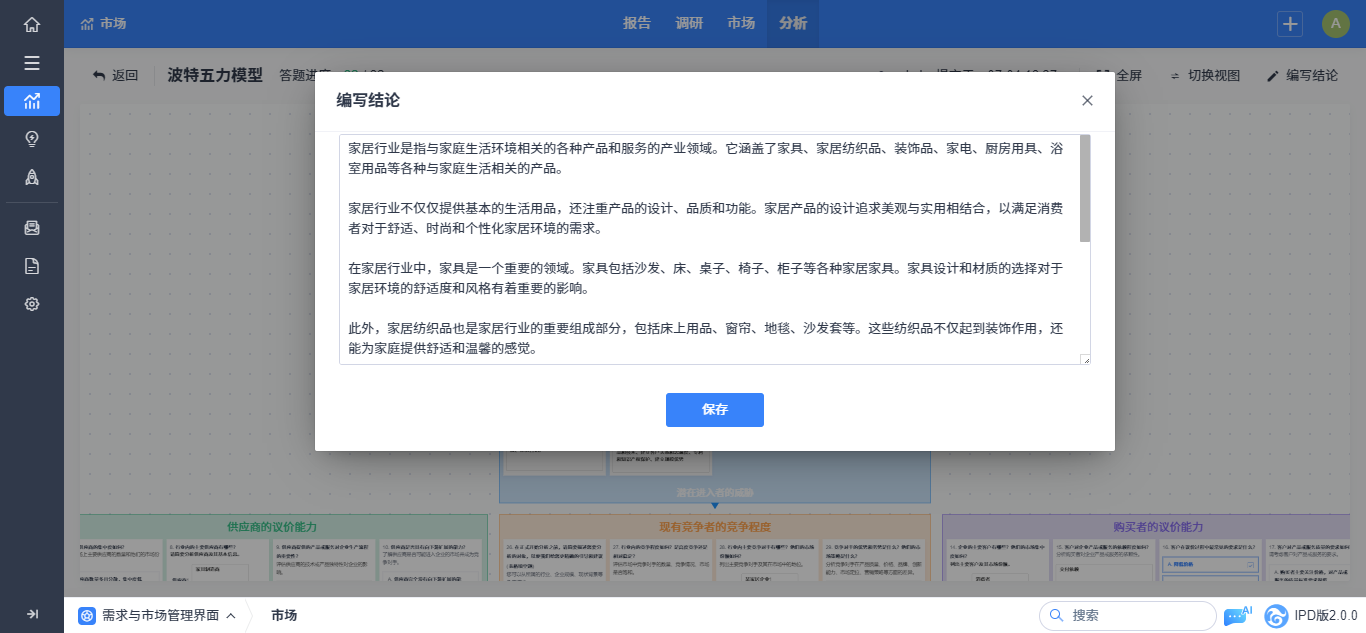 在完成分析之后,基于分析结果阅读思考分析流程和结果,并支持添加结论总结,形成有利于市场分析的结论,并进行结论的共享和沉淀。