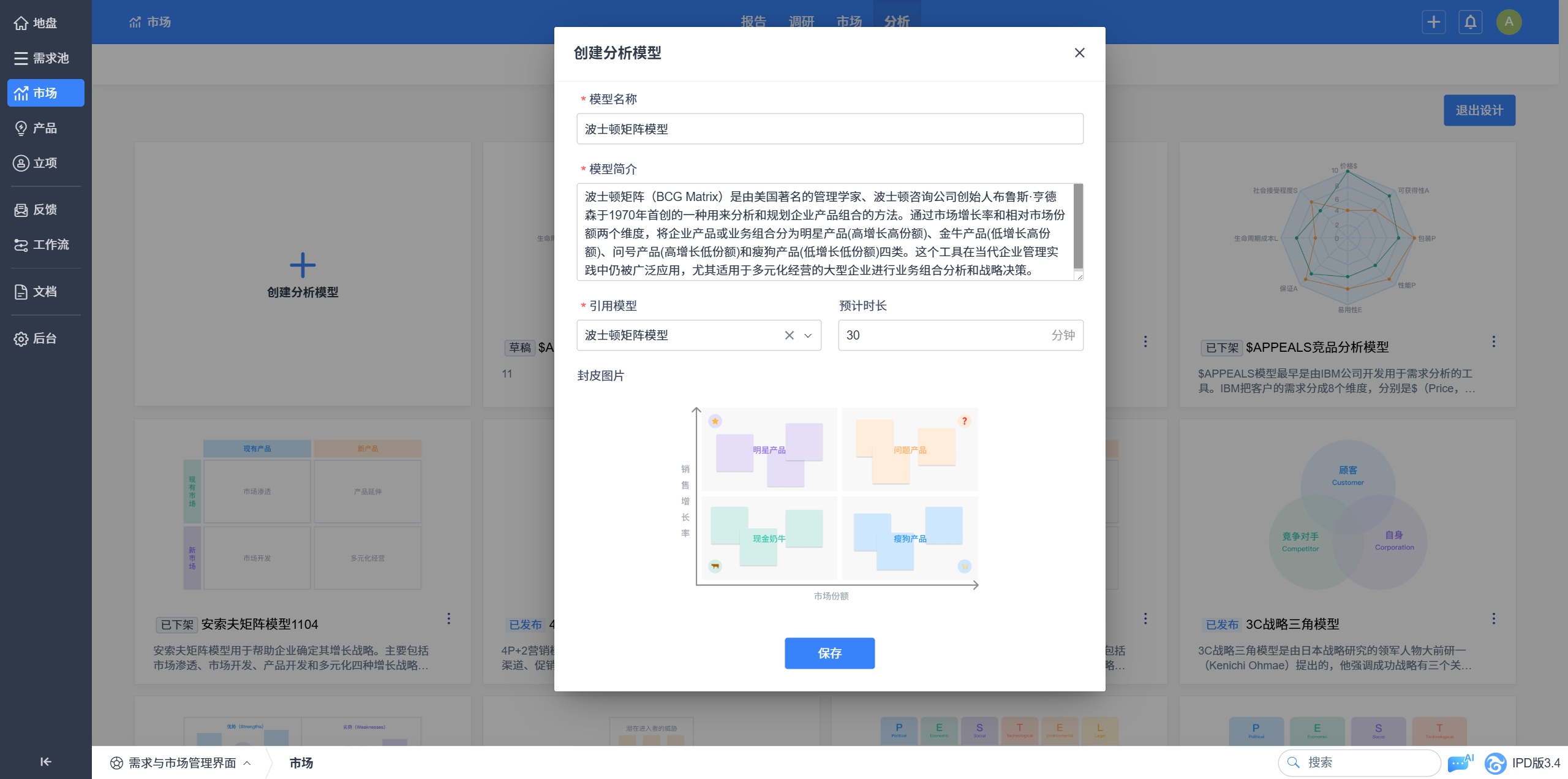 - 模型名称:输入模型实例化名称,例如波士顿矩阵模型等。