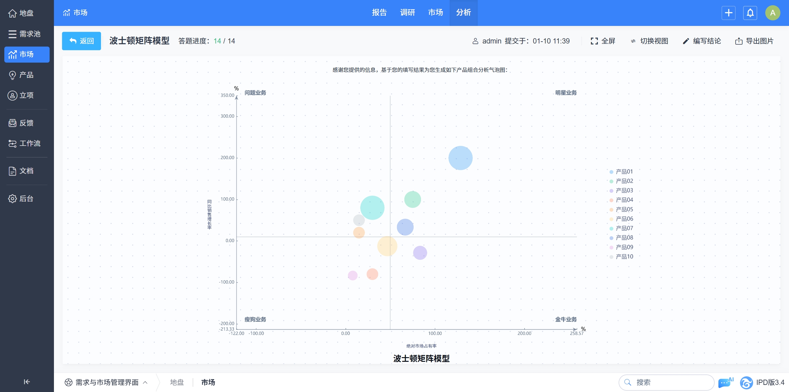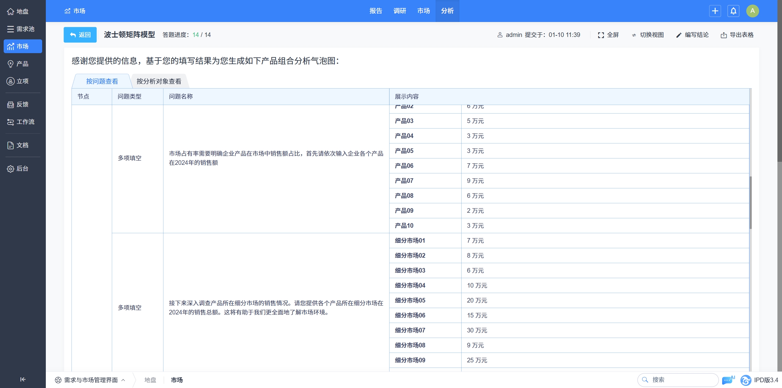 模型设计者指定当前模型要分析的具体产品、细分市场及竞品并发布后,分析者将基于设计师内置的对象进行分析。