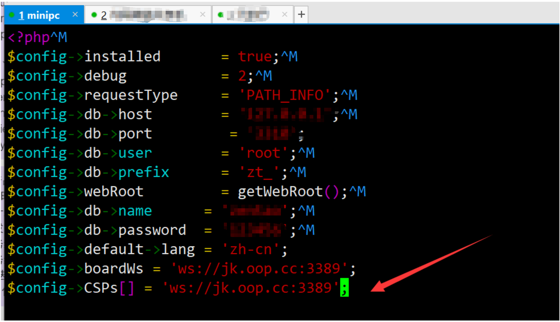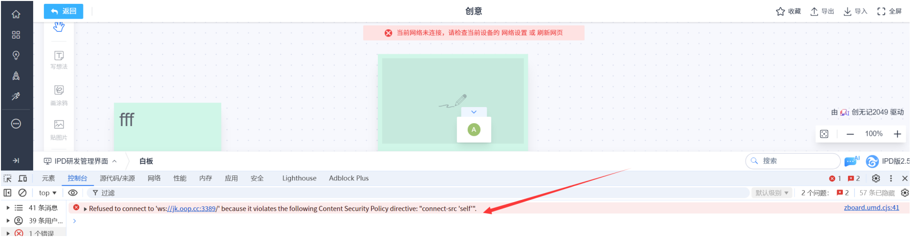 5. ws服务启动成功后,浏览器安全策略拒绝连接,在 config/my.php 中定义 $config->CSPs[] = 'ws://ws.example.com:3389';