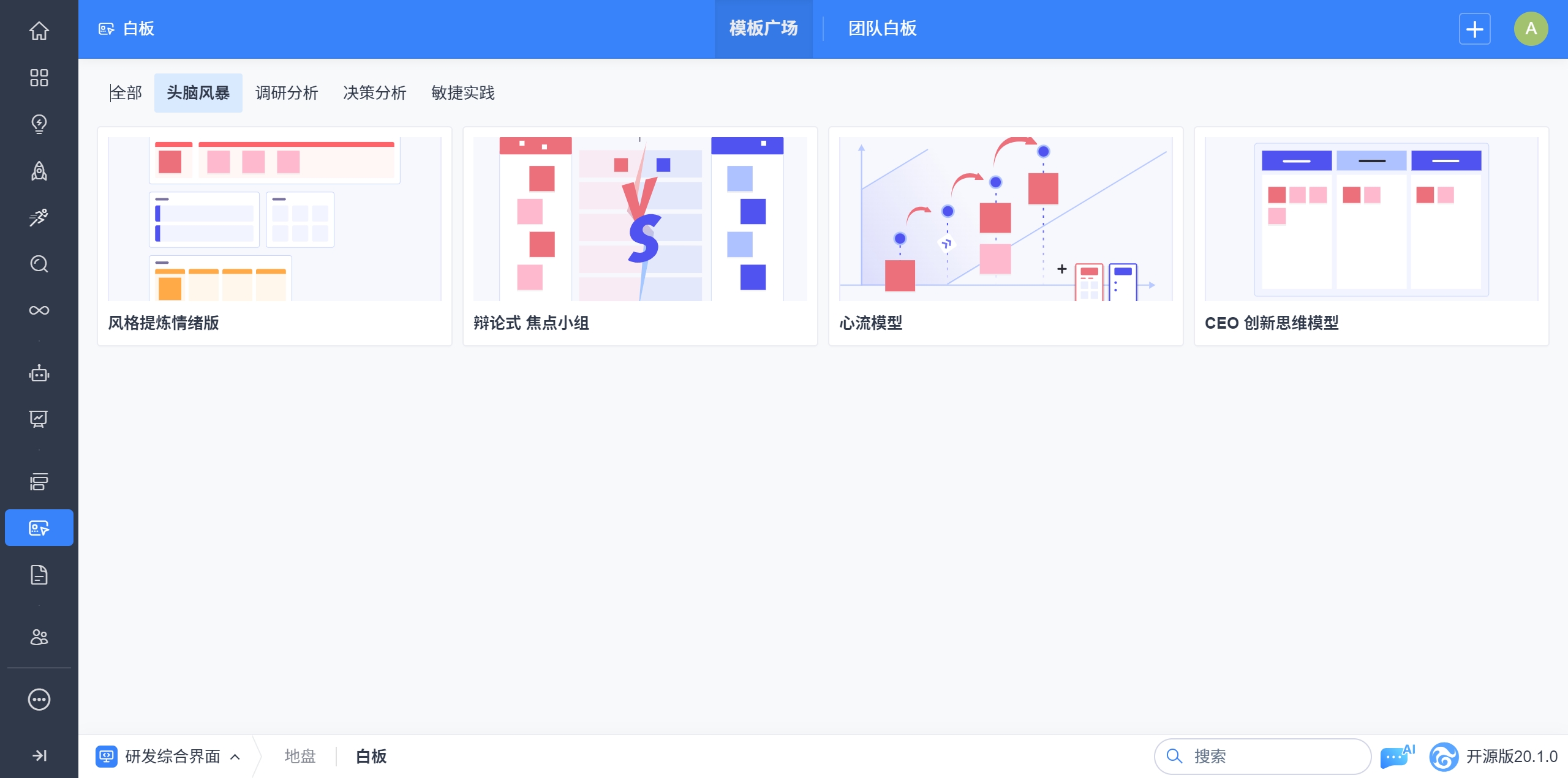 提供风格提炼情绪版、心流模型、创新思维模型和焦点小组等模板,在初期创意阶段为团队提供结构化框架,帮助团队集思广益,快速整理思路,激发创新灵感。