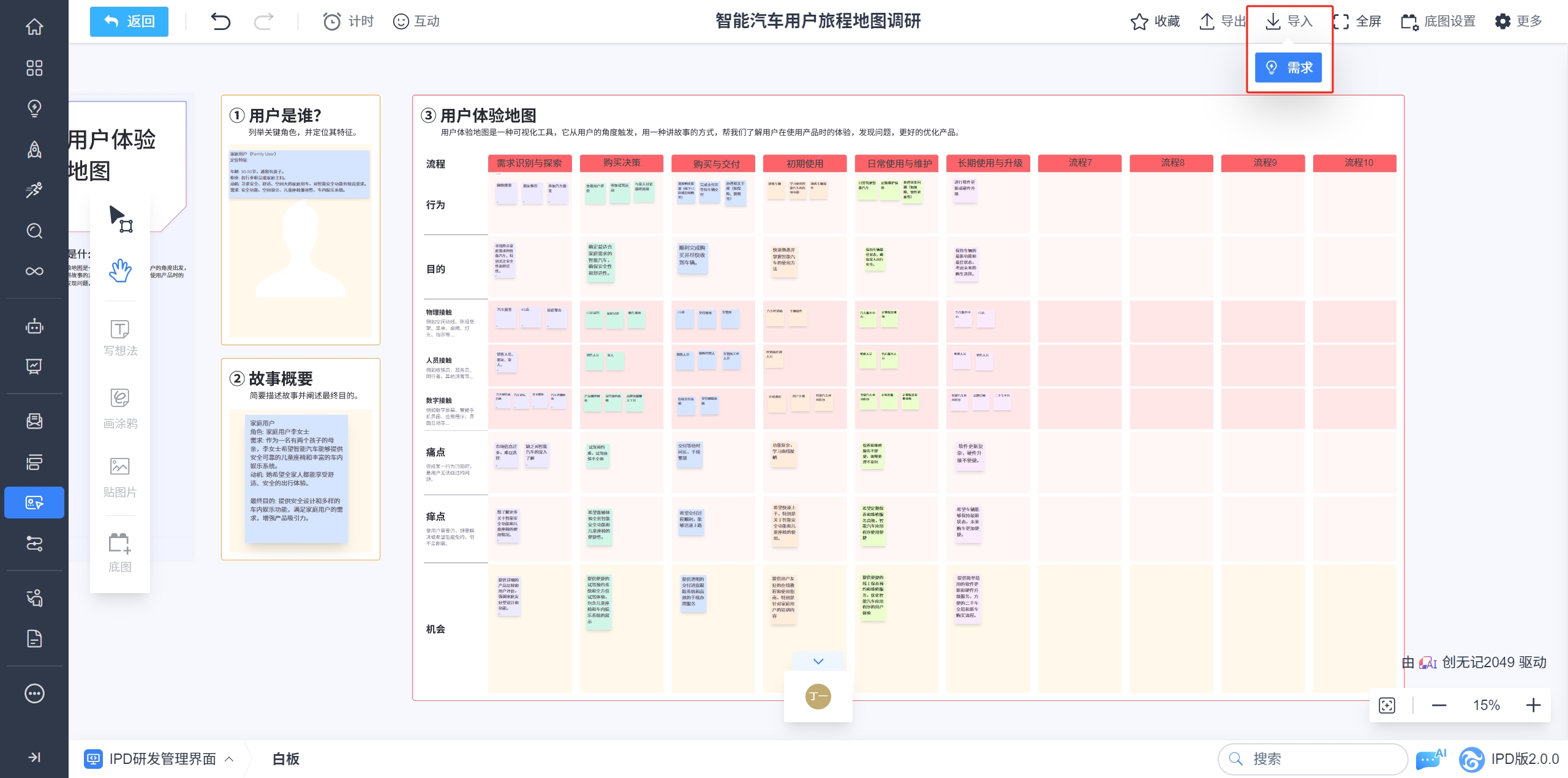 - IPD市场与需求管理界面支持导入需求池需求、业务需求、用户需求。