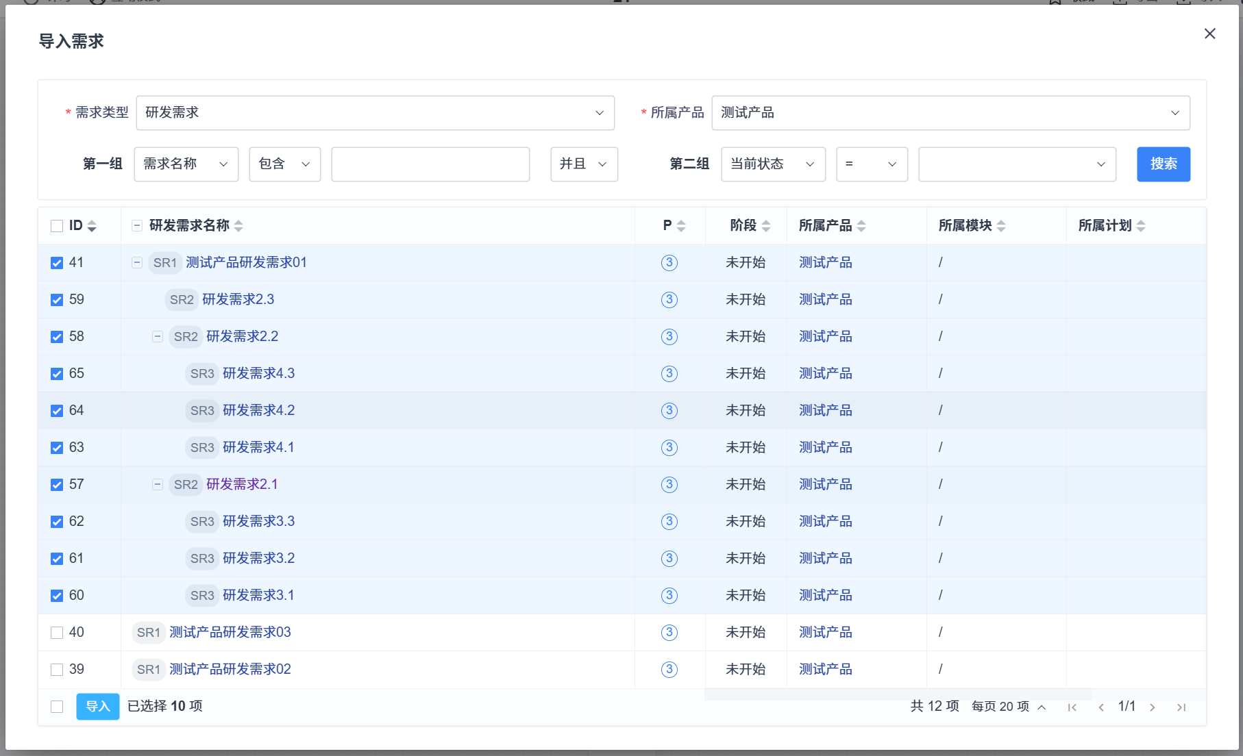 3. 勾选需要导入的具体需求,支持导入无线层级的需求。
