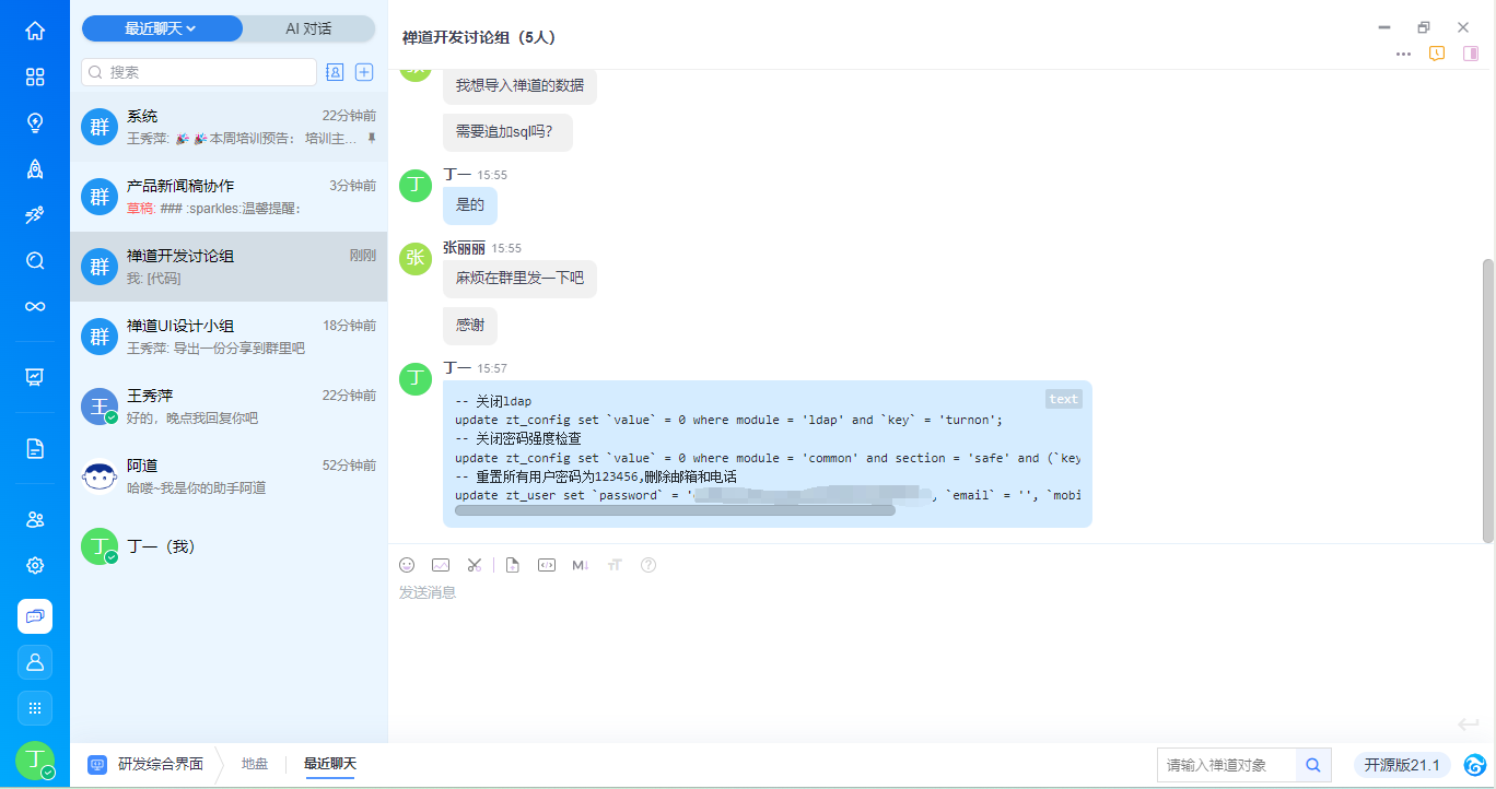 - 4.1 禅道界面功能