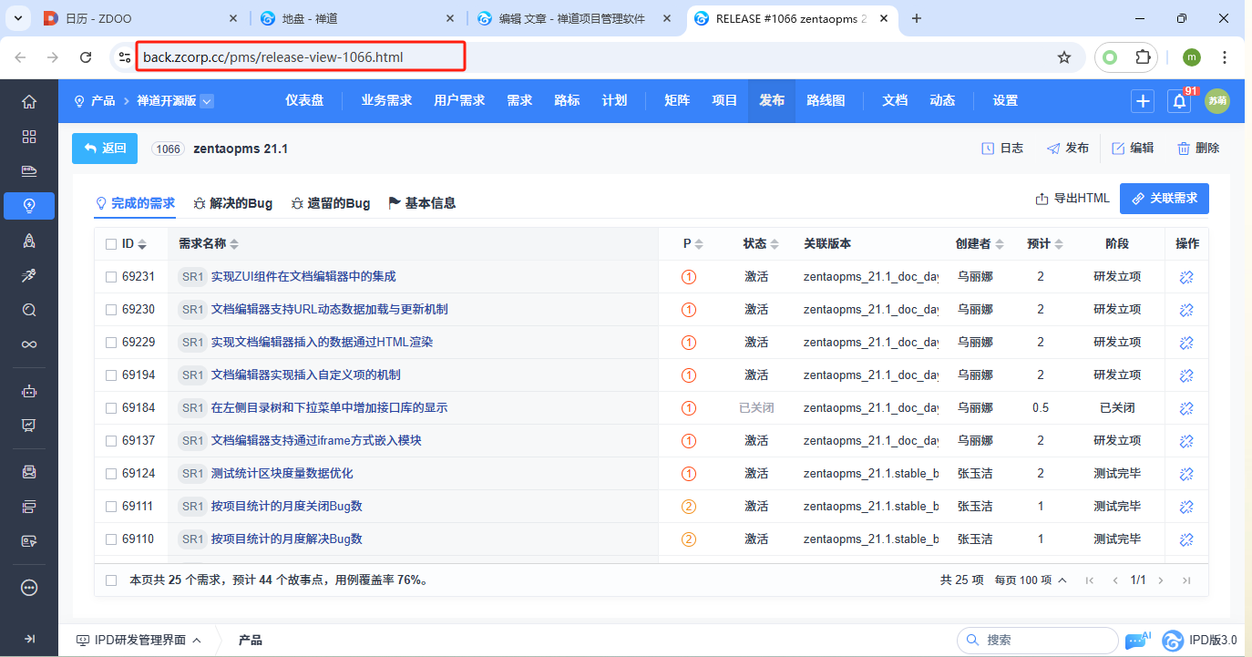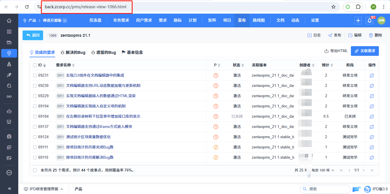 - 4.1 禅道界面功能