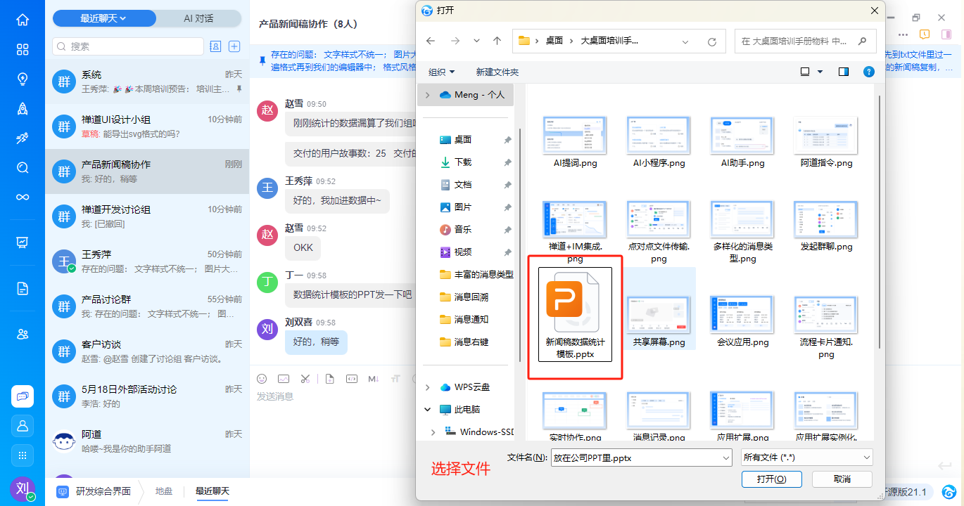- 支持在讨论组和一对一会话中传输和接收文件夹。