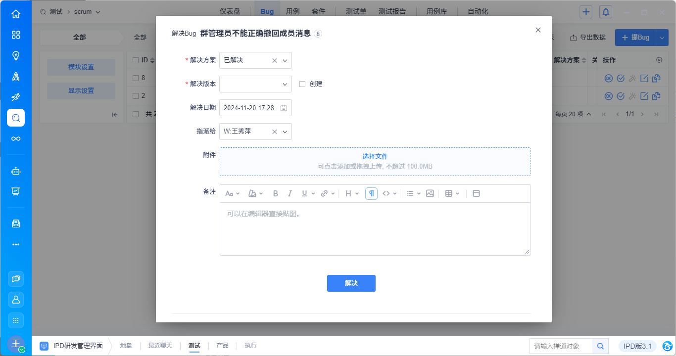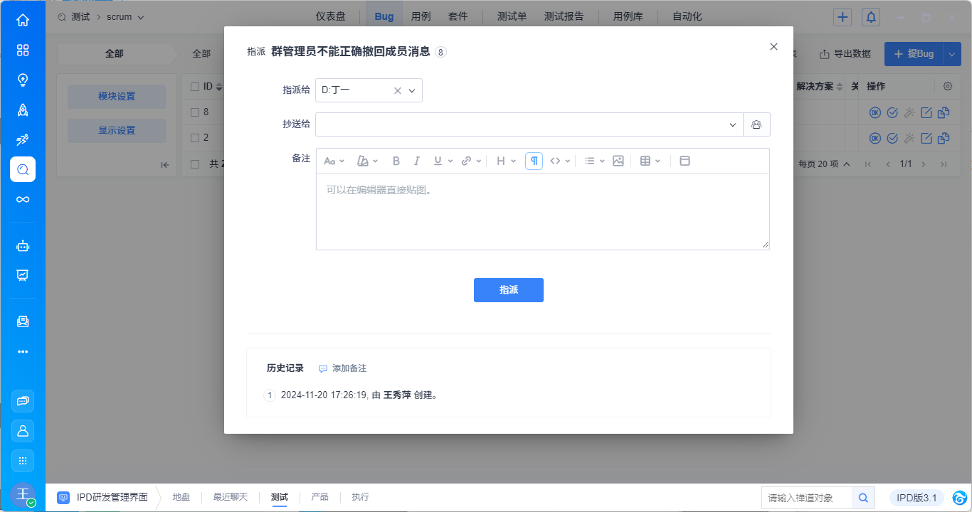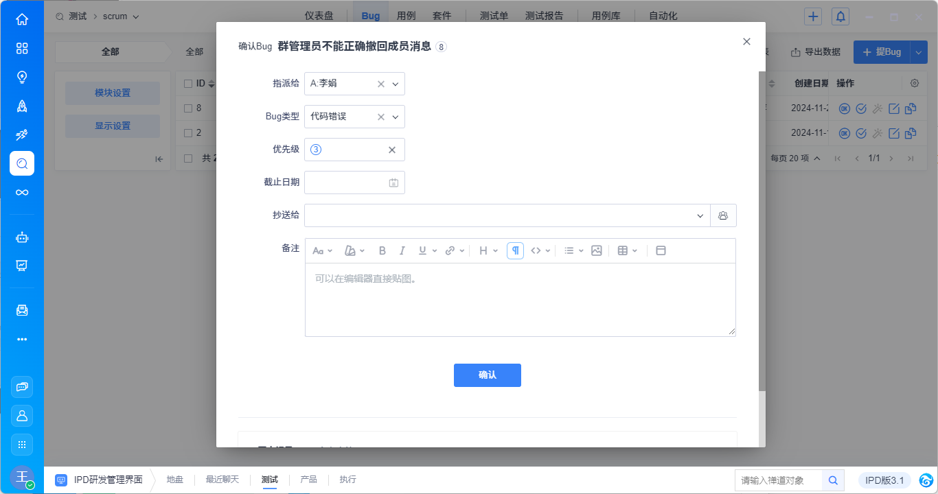 大桌面中的对话消息会直接同步过来,显示在Bug标题框里。