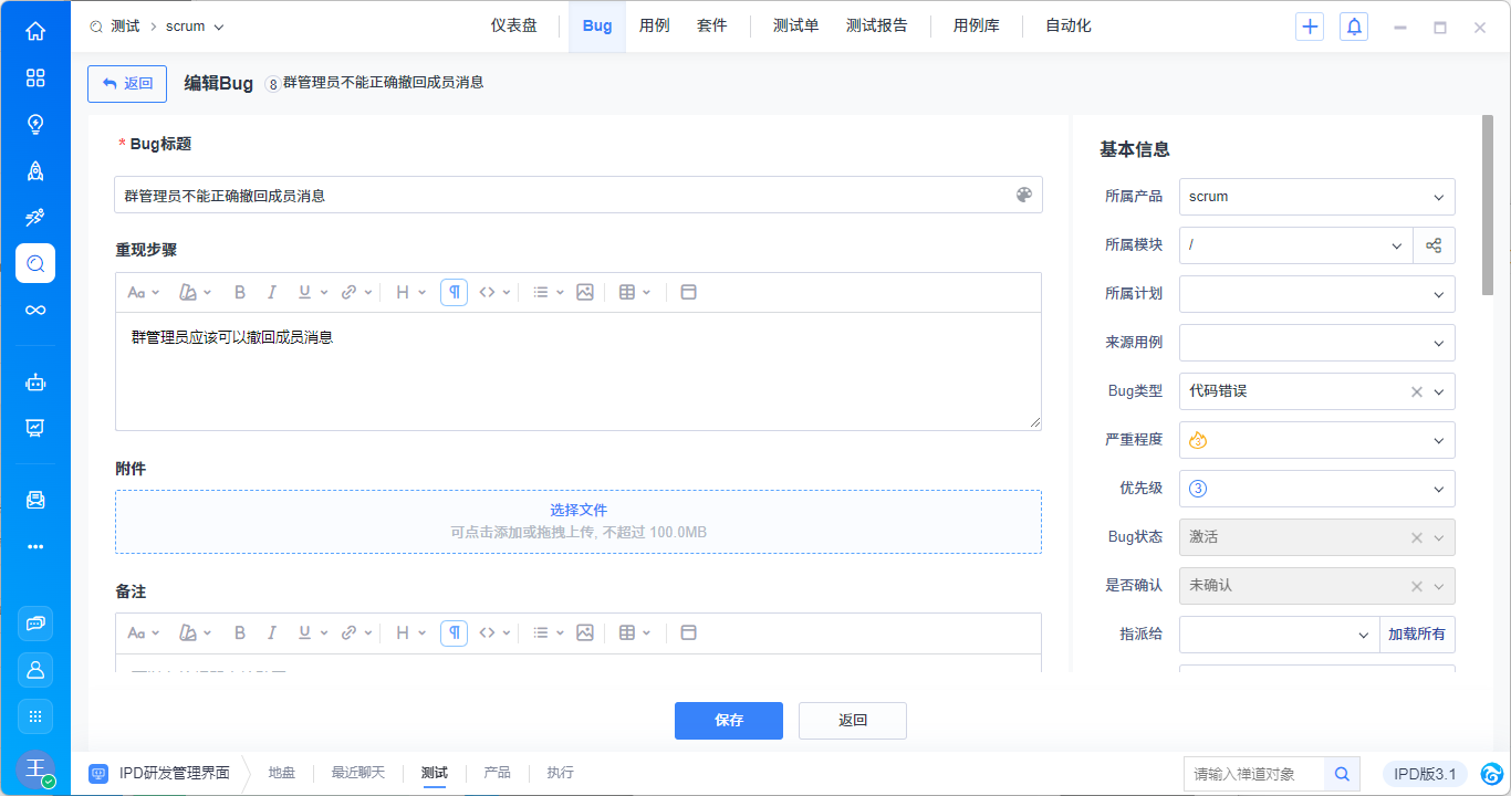 在大桌面客户端中编辑Bug: