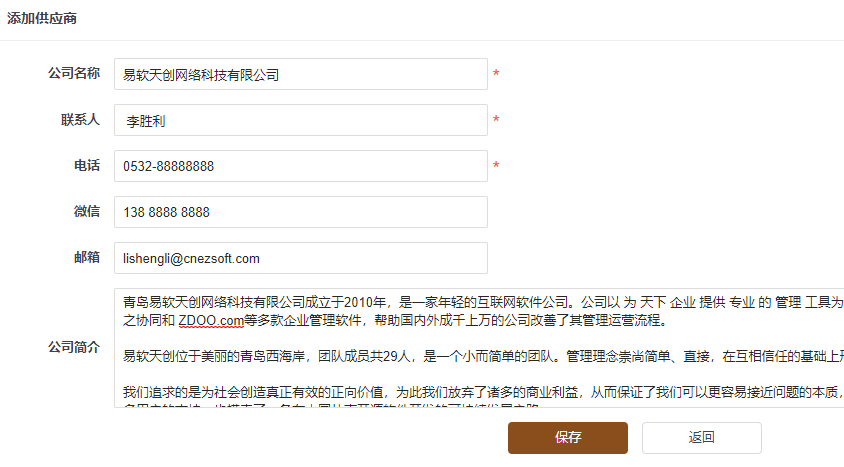 供应商添加成功后,可以在供应商列表页面里查看到。