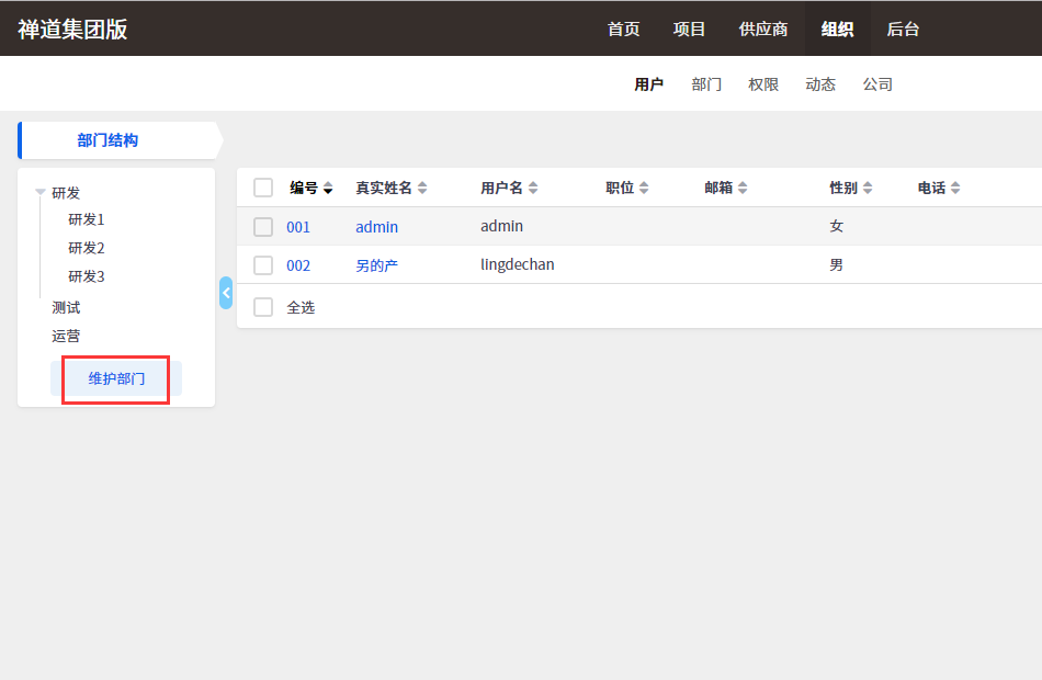 二、部门维护
