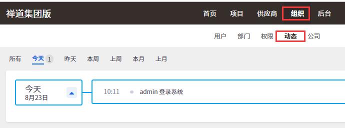 组织视图下的动态记录着集团版所有用户的操作信息。