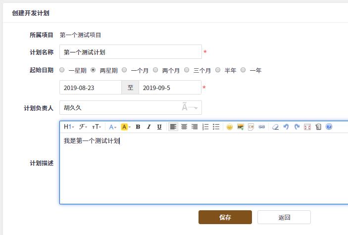 3、目前没有针对开发计划的起止时间做限制,建议开发计划的起止时间在项目起止时间周期内。