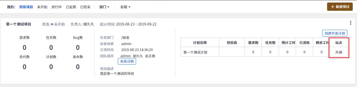 项目立项后,并对项目划分了开发计划,那么接下来就可以给开发计划开通子站点。