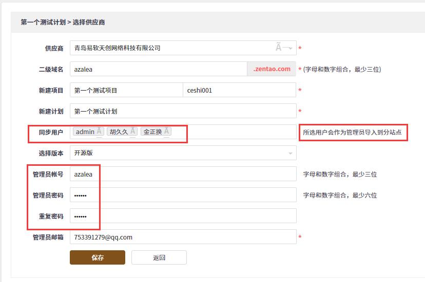 3、管理员账号密码:这里设置的是子站点的管理员和密码。后台--发信里有配置发信邮箱,创建子站点成功后,系统会给子站点的管理员发提醒邮件。