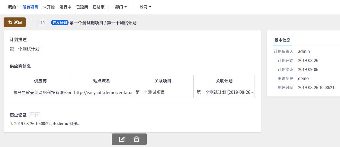 1、可以在开发计划详情页,点击供应商的站点域名来访问禅道集团版的子站点。