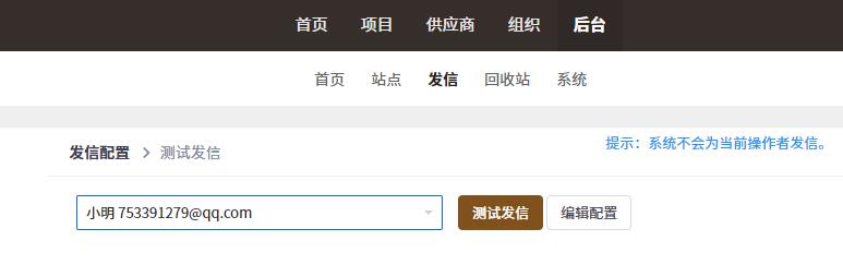 配置成功后,如果组织--用户里的用户信息里,有填写了邮箱地址,那么就可以进行测试发信。