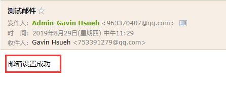 测试发信的邮箱收到了测试邮件后,这样发信的配置就算成功了。