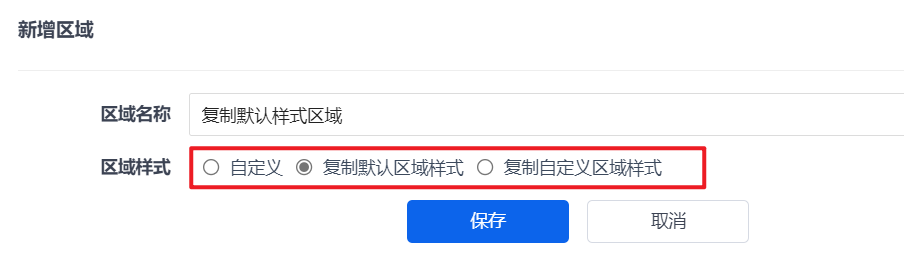 如果新建区域后,创建新区域可以选择已创建的区域样式。