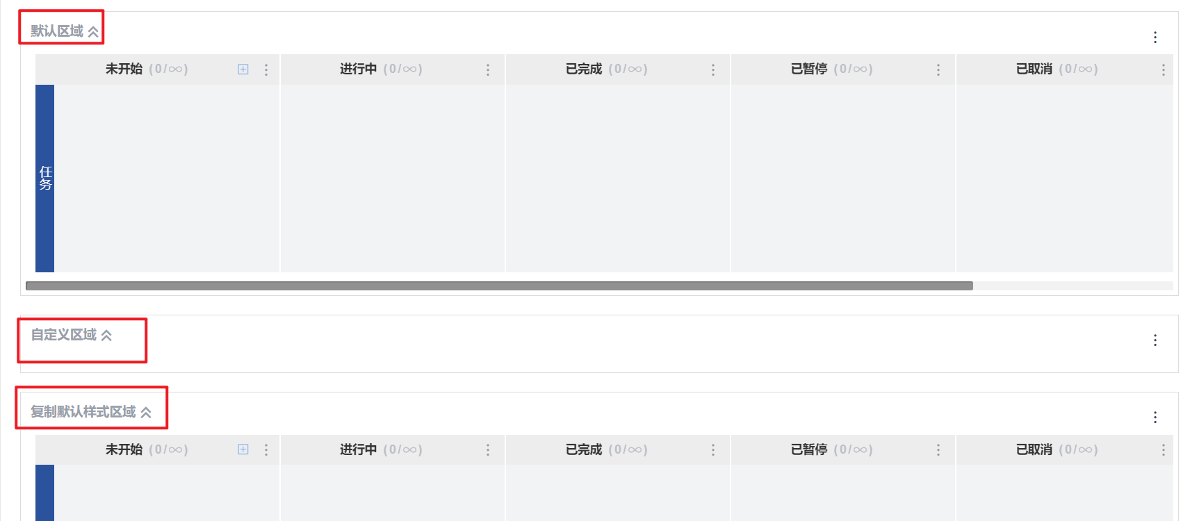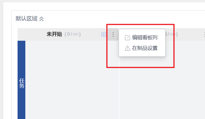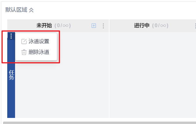 可以通过看板泳道右侧的更多按钮,来编辑区域、创建泳道、删除区域。