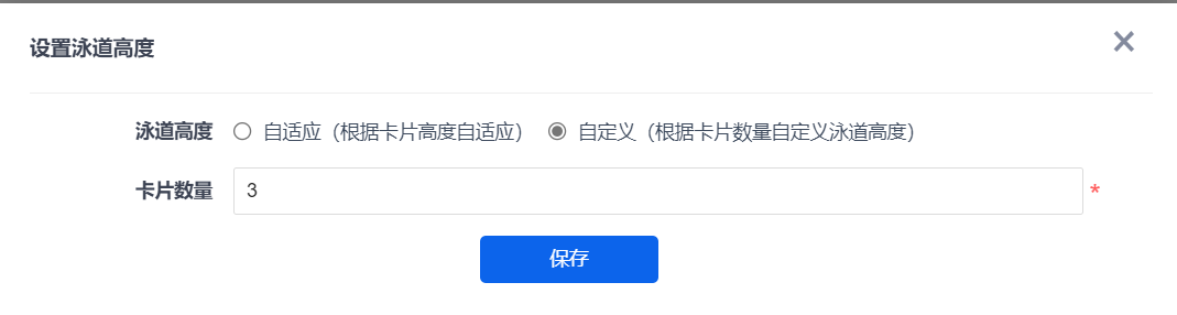 泳道的高度默认是2个任务卡片。设置为自定义高度时,卡片数量必须为大于2的正整数。