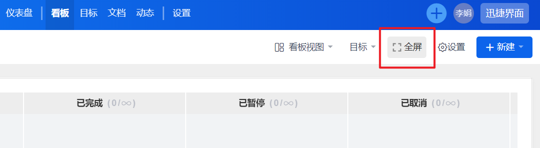 看板创建成功后,默认是任务泳道,有未开始、进行中、已完成、已暂停、已取消、已关闭看板列。