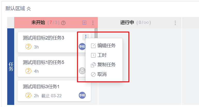 也可以通过任务的更多操作按钮来流转任务状态,移动到相应的看板列。