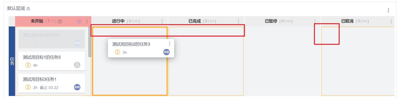 - 已完成的任务不可以拖拽移动到已暂停和已取消看板列。