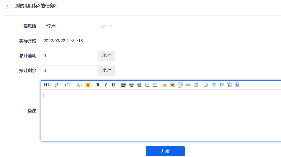 未开始移动到进行中,需要再弹窗页面里确认开始,填写相应的工时信息。