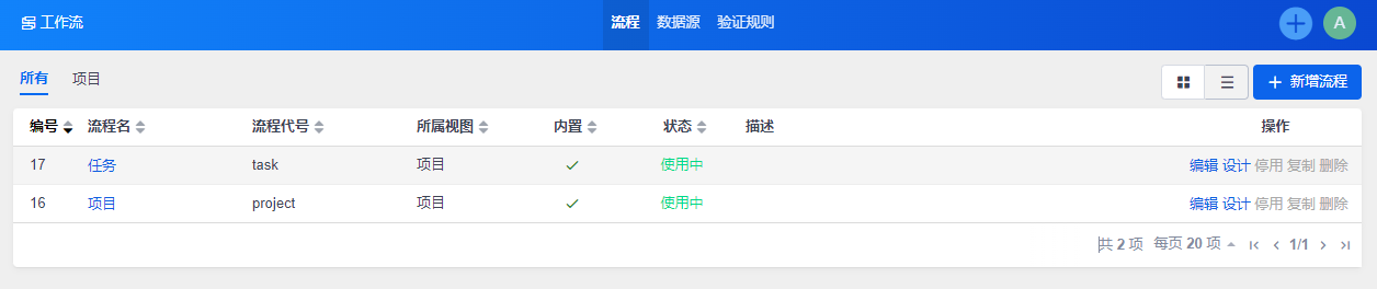 内置的任务和项目只可以编辑和设计,不可停用、复制、删除。