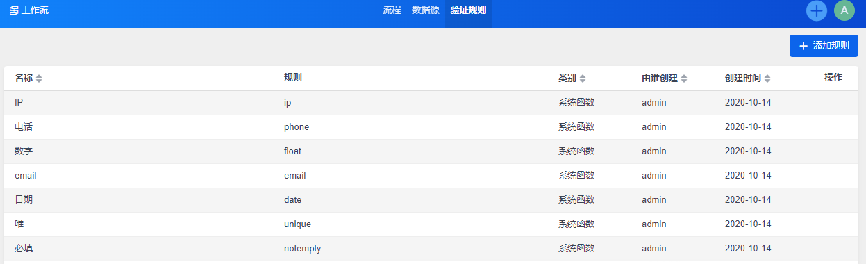 验证规则可以用于字段、表单等处的验证,需要使用正则表达式。