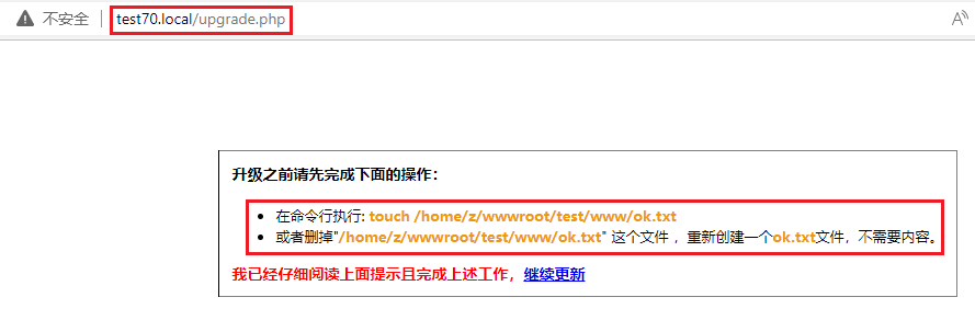 覆盖了代码后,可以访问禅道迅捷版域名或IP:端口号/upgrade.php,进入升级页面。