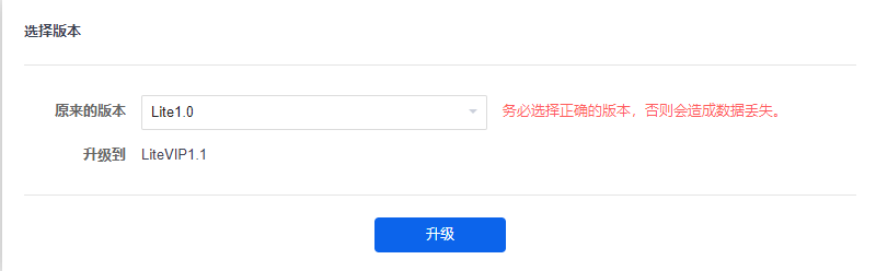 3. 选择版本。禅道迅捷版系统会自动获取原来的版本号信息,如果获取的版本不正确可以手动选择版本。版本请一定与当前的版本信息一致。