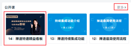 首页的公开课区块推荐最近更新的公开课,您可以点击公开课的名称进入课程进行学习,也可以点击更多按钮,到官网查看更多的公开课。