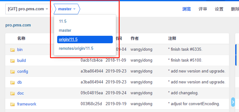需要查看,直接点击下图红框位置,切换分支即可。