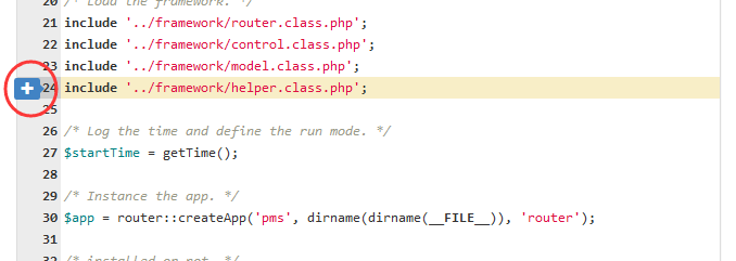 查看代码时,鼠标悬浮后会在代码左侧出现加号,点击加号创建评审。
